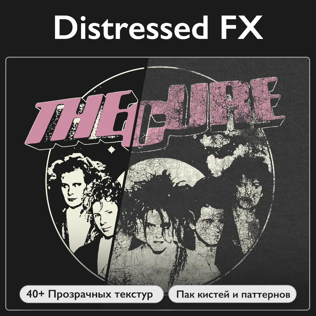 Distress FX помогает создавать реалистичные принты в стиле vintage, grunge, streetwear — усиливая восприятие бренда и подачу коллекций.